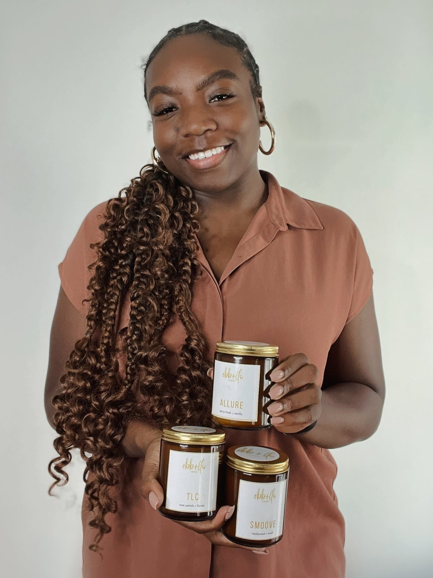 Eboni lives in Maryland with her son. She is a public affairs professional currently serving active duty in the U.S. Air Force. In January of 2022, Eboni launched ebb + flo essentials as a way to combine her love for aromatic oils, candles + incense with her passion for do-it-yourself projects.