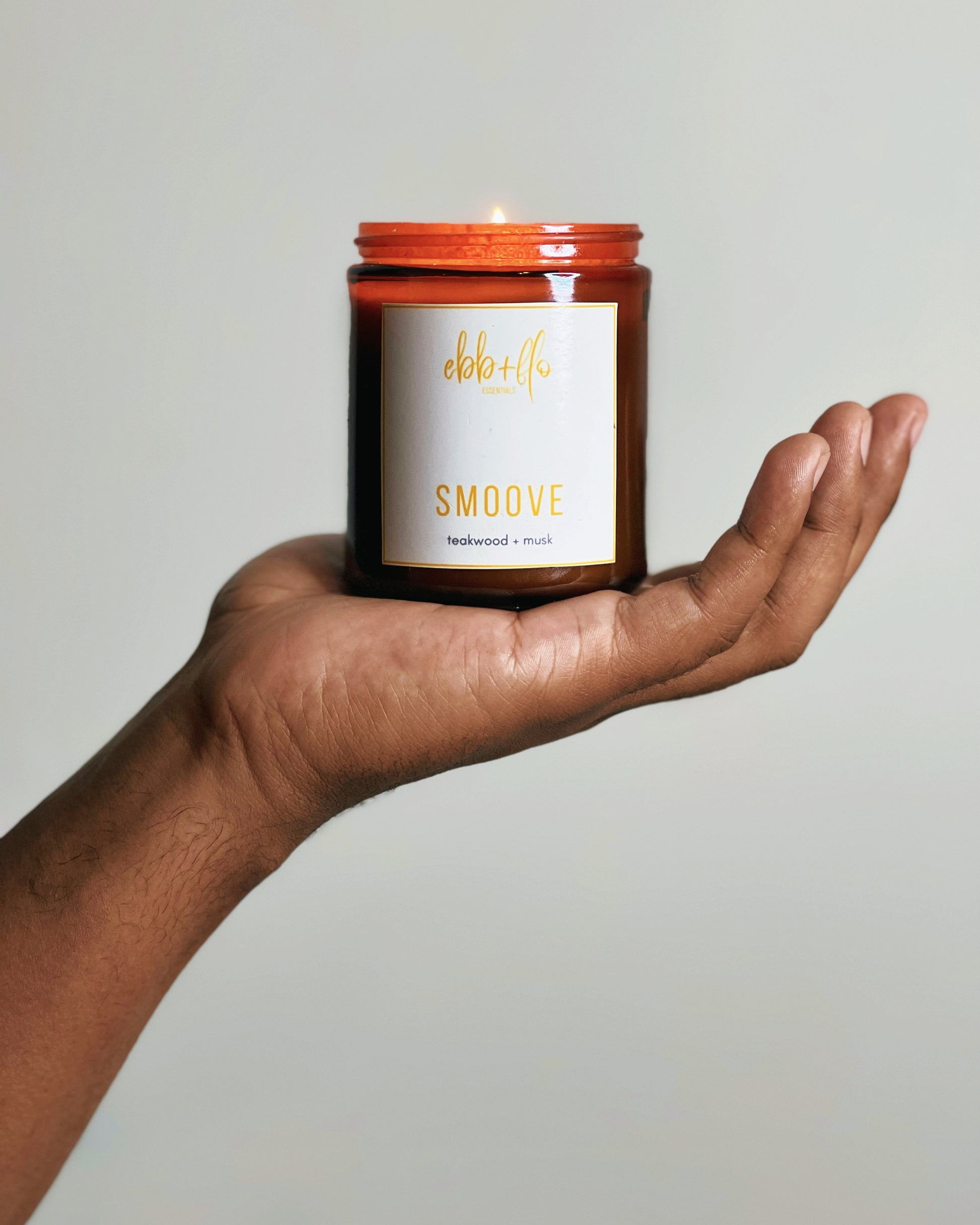 light a smoove candle + let the soothing scents of teakwood, cardamom + musk help you release the stress of the day